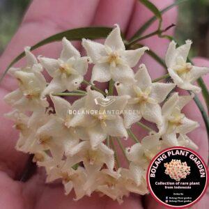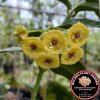 Hoya Hybrid sp. Indonesia. the latest and very rare, for the leaves are the result of a collaboration between Hoya densifolia and campanulata and the color of the flowers is yellow with the center of the corona being reddish black and in the middle point being yellow following “Hoya densifolia” and for the size of the flowers following its parent “Hoya Campanulata” and this Hoya tends to have a lemon scent. available at an economical price, and a dense size, limited stock.