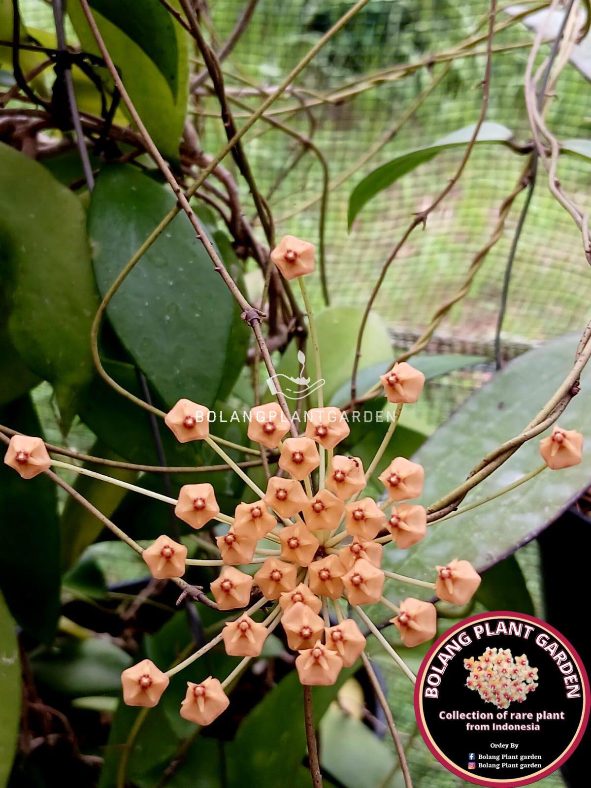This Hoya is very easy to care for. Today, Wednesday, November 19, 2025, it successfully bloomed for the first time in my garden. It was found in the Meratus mountain forest area of South Kalimantan, Indonesia. It has an orange flower variant with a cream-colored corona. This Hoya is only available at an affordable price.