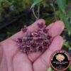 Hoya Lamingtoniae, is endemic to Papua New Guinea (PNG). This Hoya has purplish red petals with a dark red corona with a combination of yellow in the center point. green leaves, thin and slightly veined. very fast growth, especially growing in the wet tropical biome.