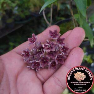 Hoya Onychoides originates from Papua New Guinea (PNG). Hoya onychoides is a climbing plant native to Papua New Guinea. Its striking flowers attract attention, especially when each blooms with its red petals a combination of purple and pure white, and the purplish red corona a combination of white in the center which perfectly complements the unique shape of the entire bloom. This plant is classified as very rare and stock is limited.